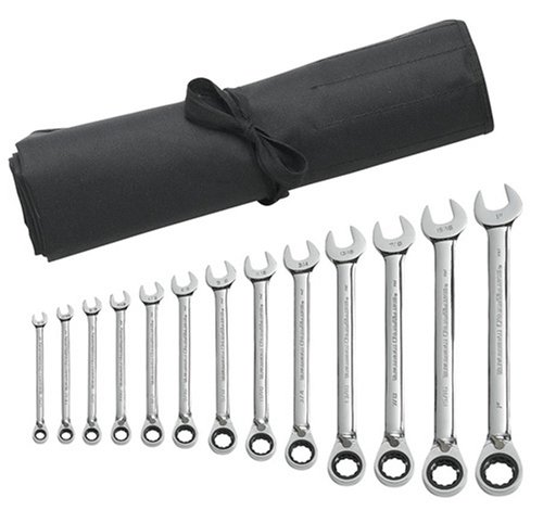 Box finish desires as little as 5 stages to maneuver fastener..15 stage offset of field finish provides extra knuckle clearance..Compact reversing lever for one hand use..Surface force cut backs fastener rounding.... ... Read more Gear Wrench 9509R 13 Piece Reversible Combination Ratcheting Wrench Set-SAE Roll